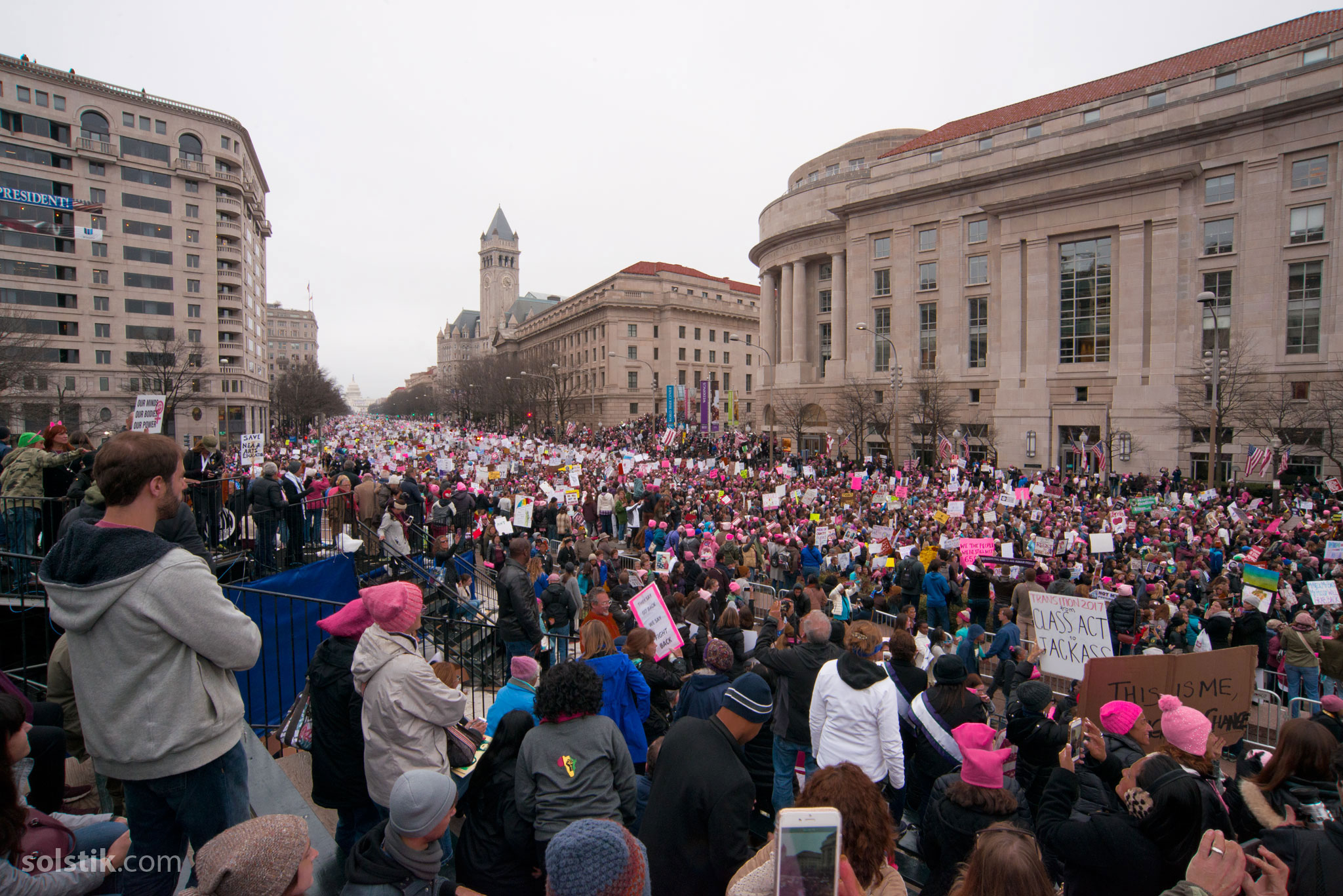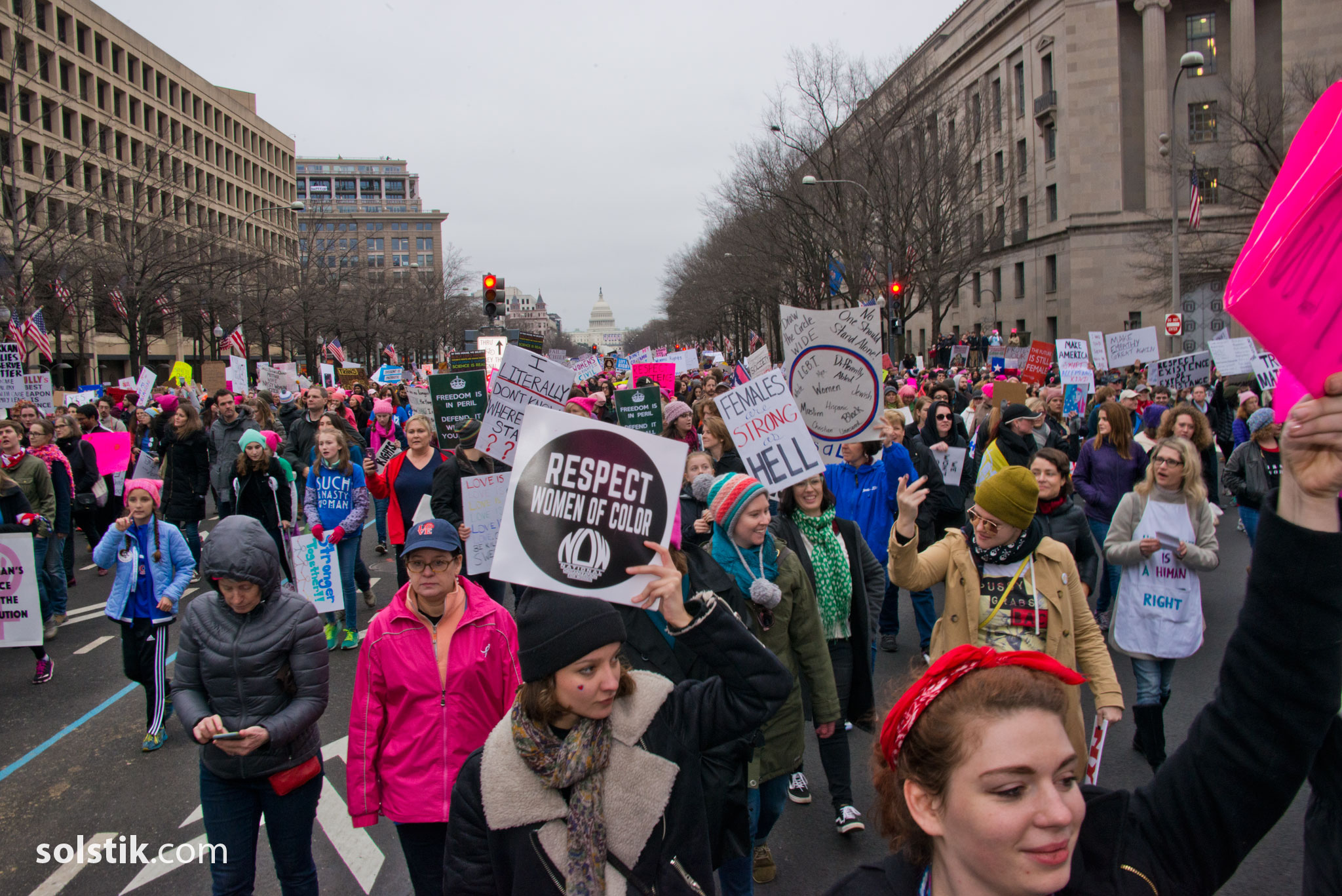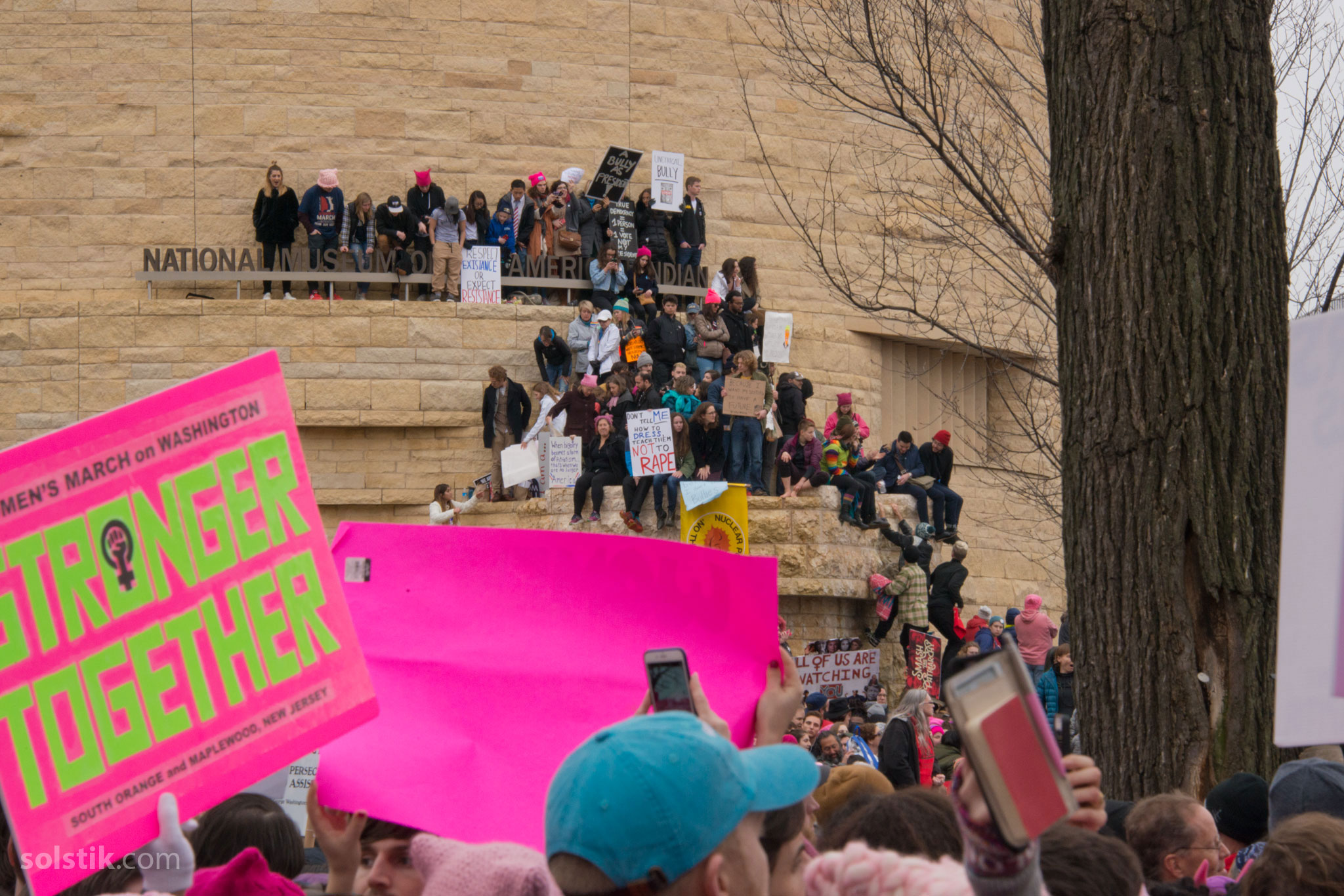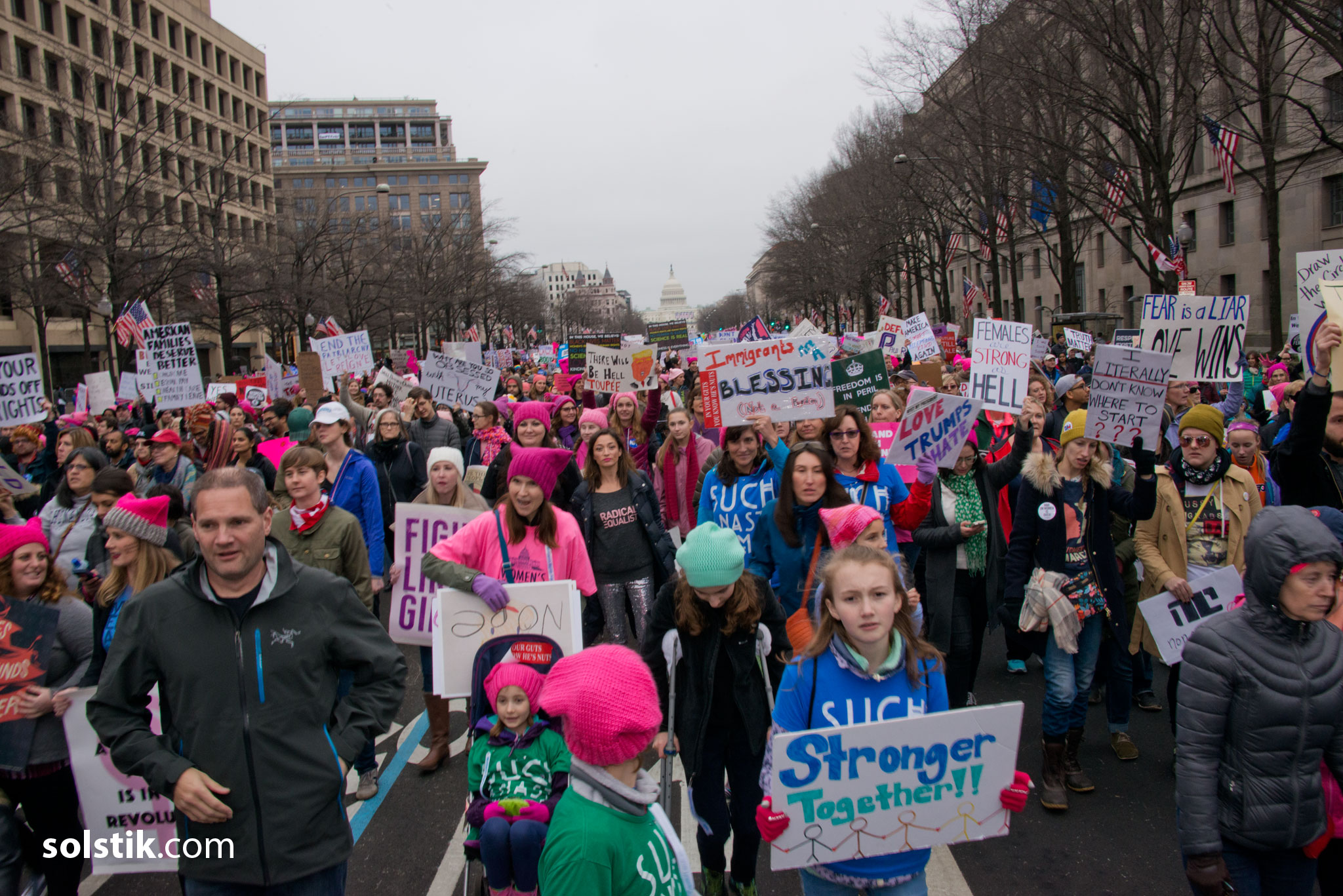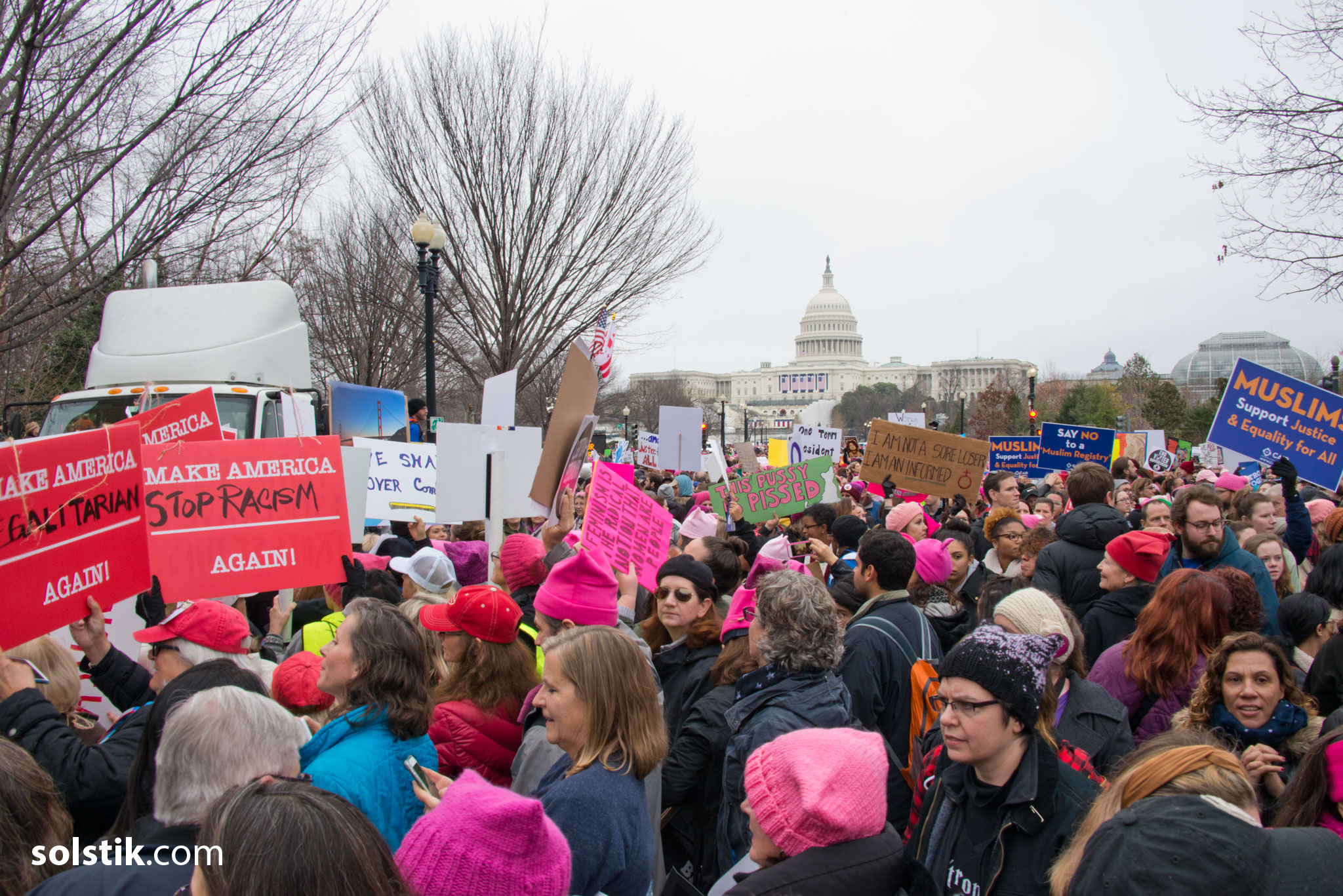 On Jan. 21, 2017, an estimated 500,000 people attended the first Women's March on Washington, DC. It followed Hillary Clinton's historic campaign as the first women nominated by a major party to run for U.S. President. As one of the more significant gatherings on the National Mall, it will forever be compared to other historic events, such as presidential inaugurations, the 1963 March on Washington, and the 2018 March for Our Lives to end gun violence. The Women’s March on Washington brought a continued focus on women's issues and was mirrored by sister events across the nation and around the world. The political views expressed in the signs below are those of the march organizers and attendees and are shown here for educational and historical preservation purposes.