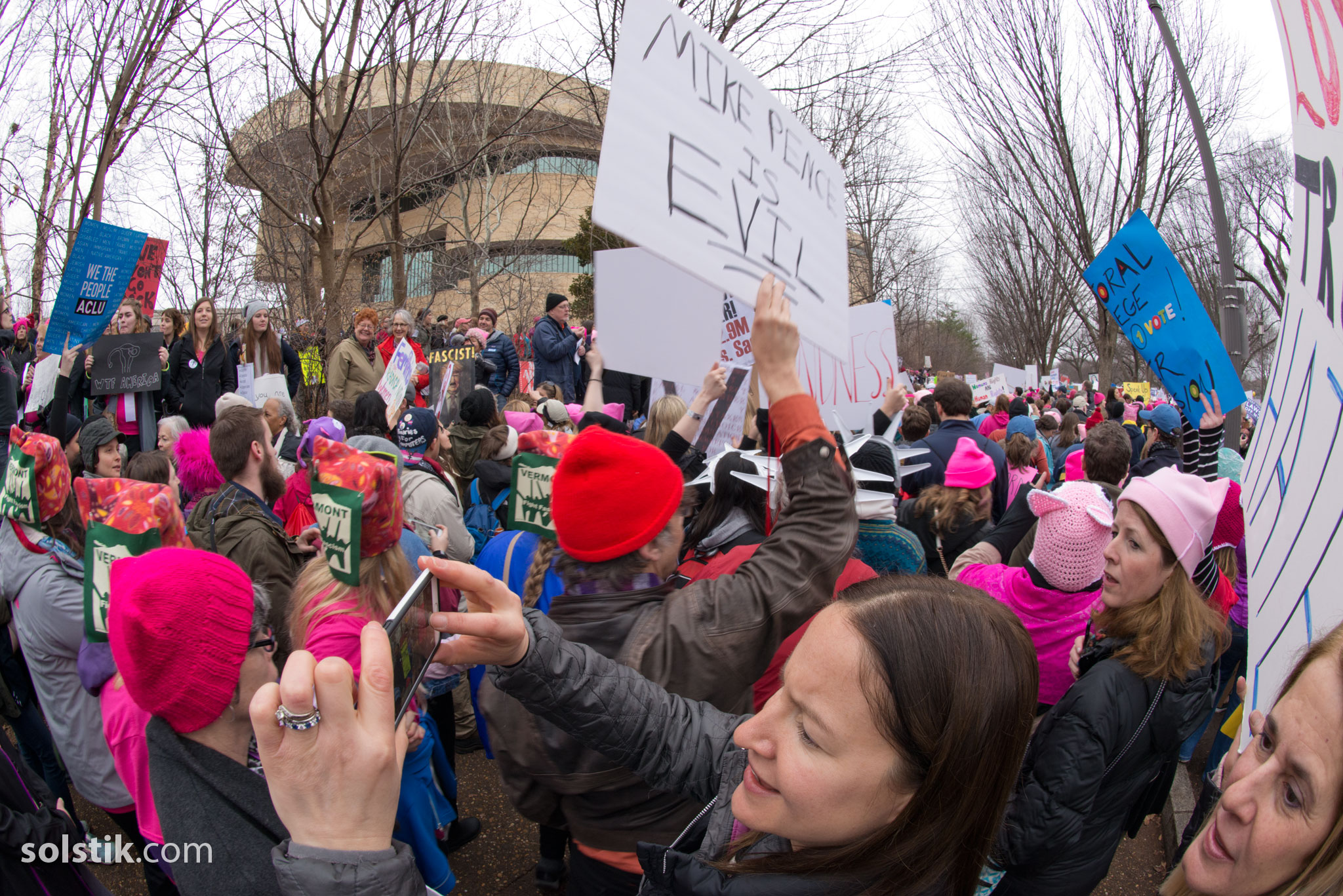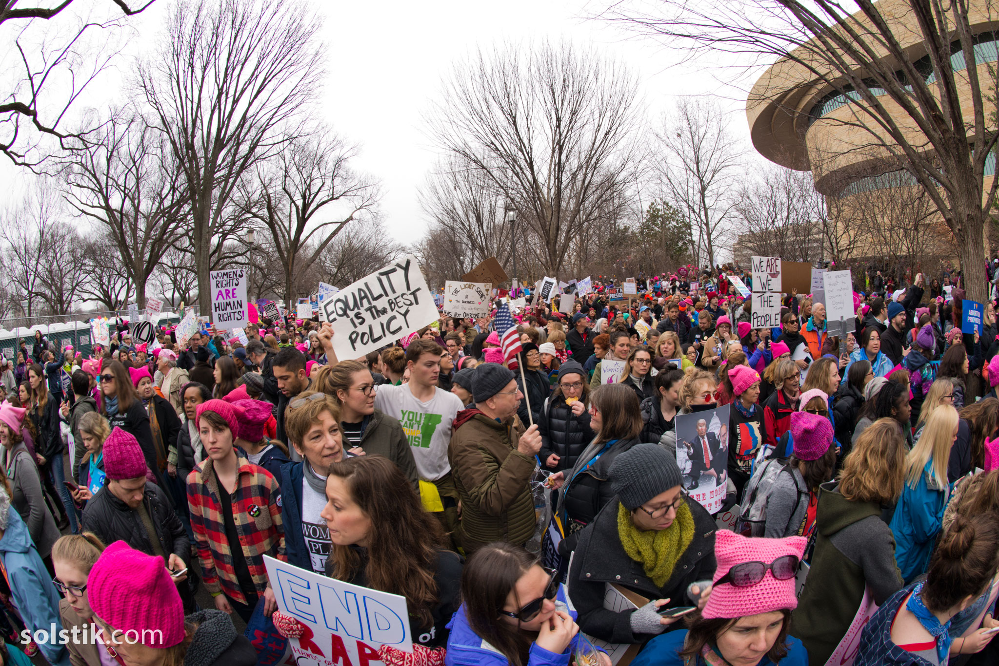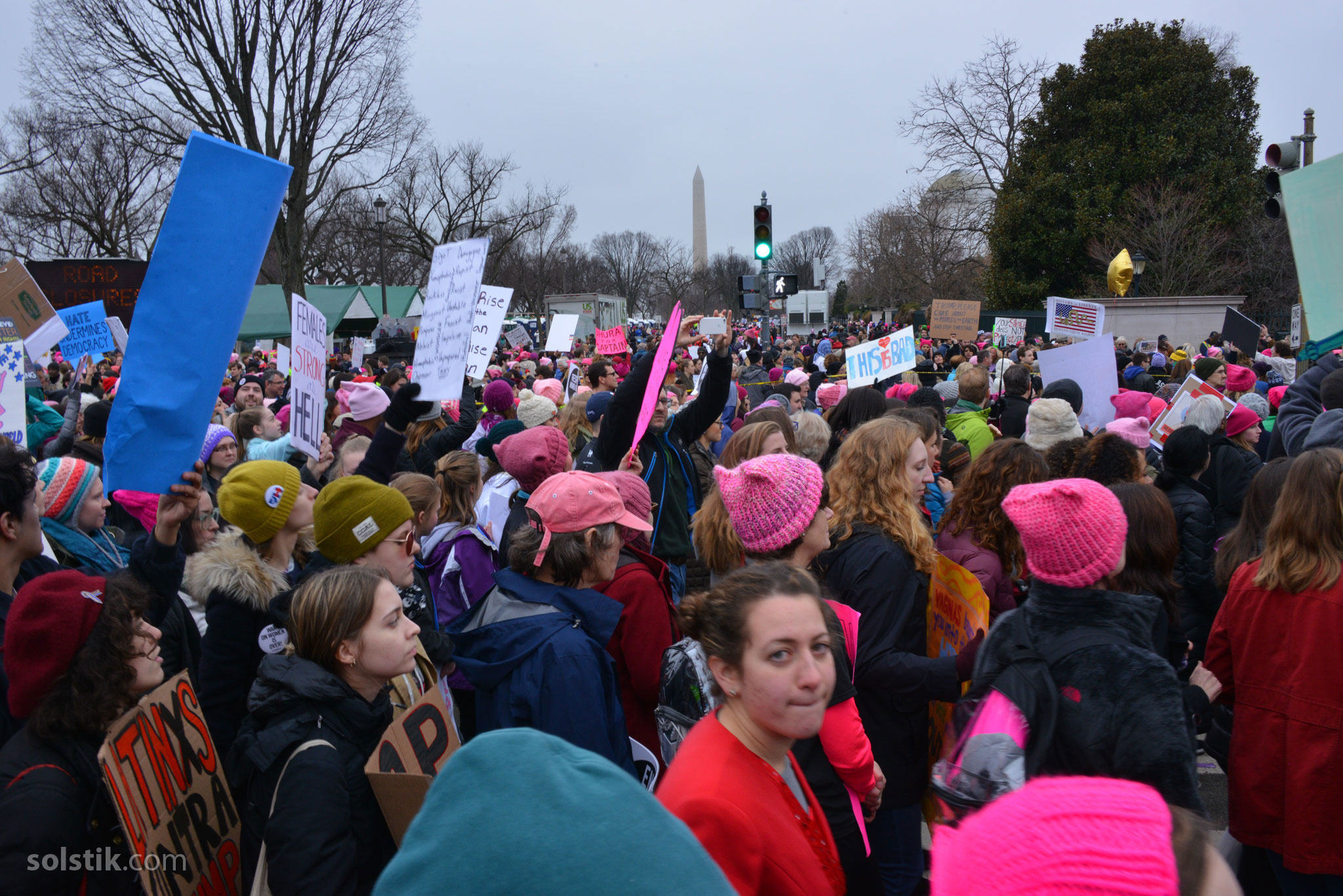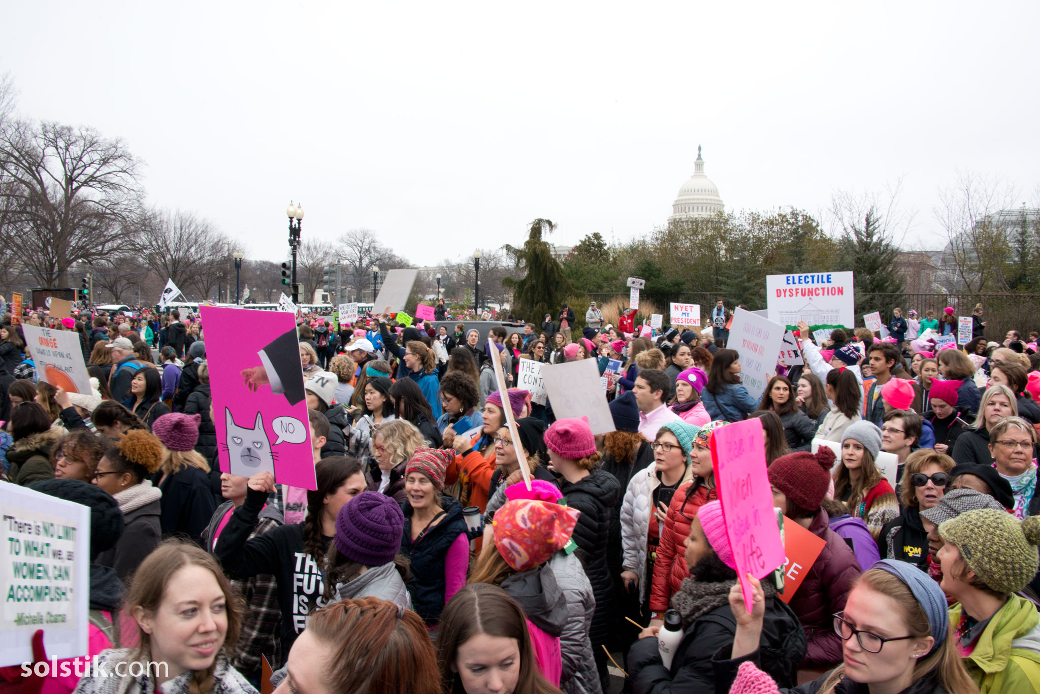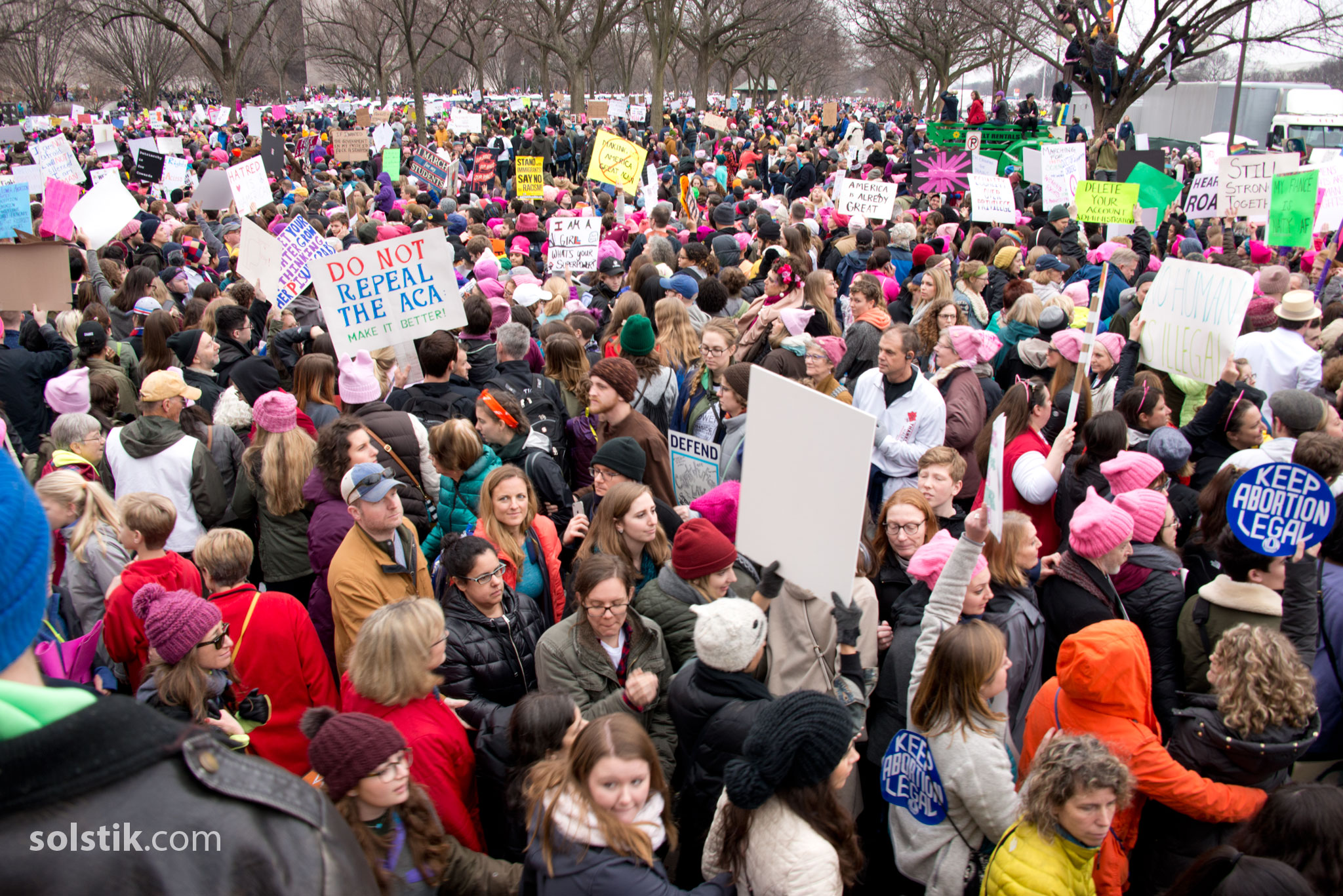 On Jan. 21, 2017, an estimated 500,000 people attended the first Women's March on Washington, DC. It followed Hillary Clinton's historic campaign as the first women nominated by a major party to run for U.S. President. As one of the more significant gatherings on the National Mall, it will forever be compared to other historic events, such as presidential inaugurations, the 1963 March on Washington, and the 2018 March for Our Lives to end gun violence. The Women’s March on Washington brought a continued focus on women's issues and was mirrored by sister events across the nation and around the world. The political views expressed in the signs below are those of the march organizers and attendees and are shown here for educational and historical preservation purposes.