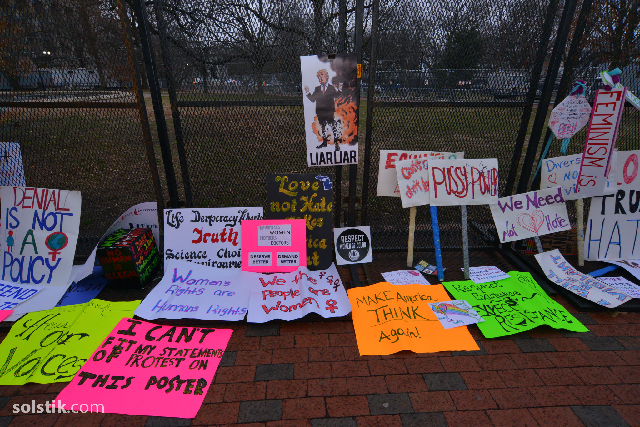 At the end of the day, people left their signs at the temporary fence put up around the White House for inauguration.